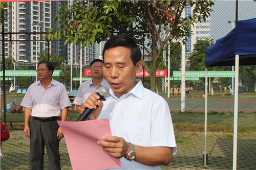 公司黃鼎龍董事長(zhǎng)宣布籃球賽開幕